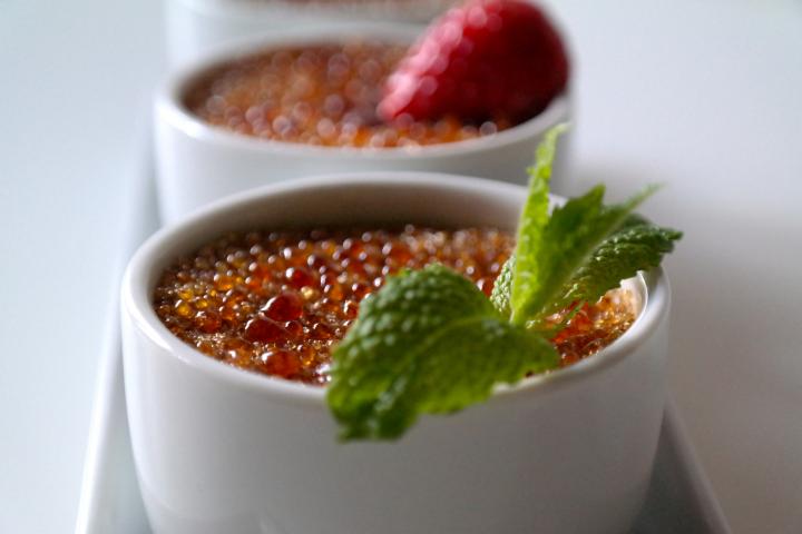 Dreierlei Creme Brulee Minze, Erdbeeren und Vanille