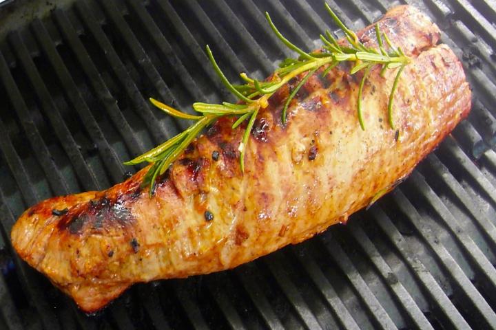 In Cidre mariniertes Schweinefilet vom Grill (Gas, Holzkohle).