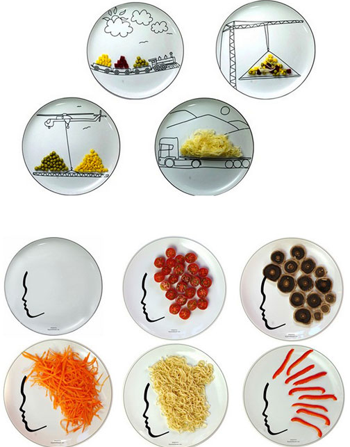 Mit diesen Tellern lassen sich sogar Kinder zum Gemüseessen überreden.Die Teller sind von dem Designer Boguslaw Sliwinski Bezugsadresse unter www.eatandmore.eu